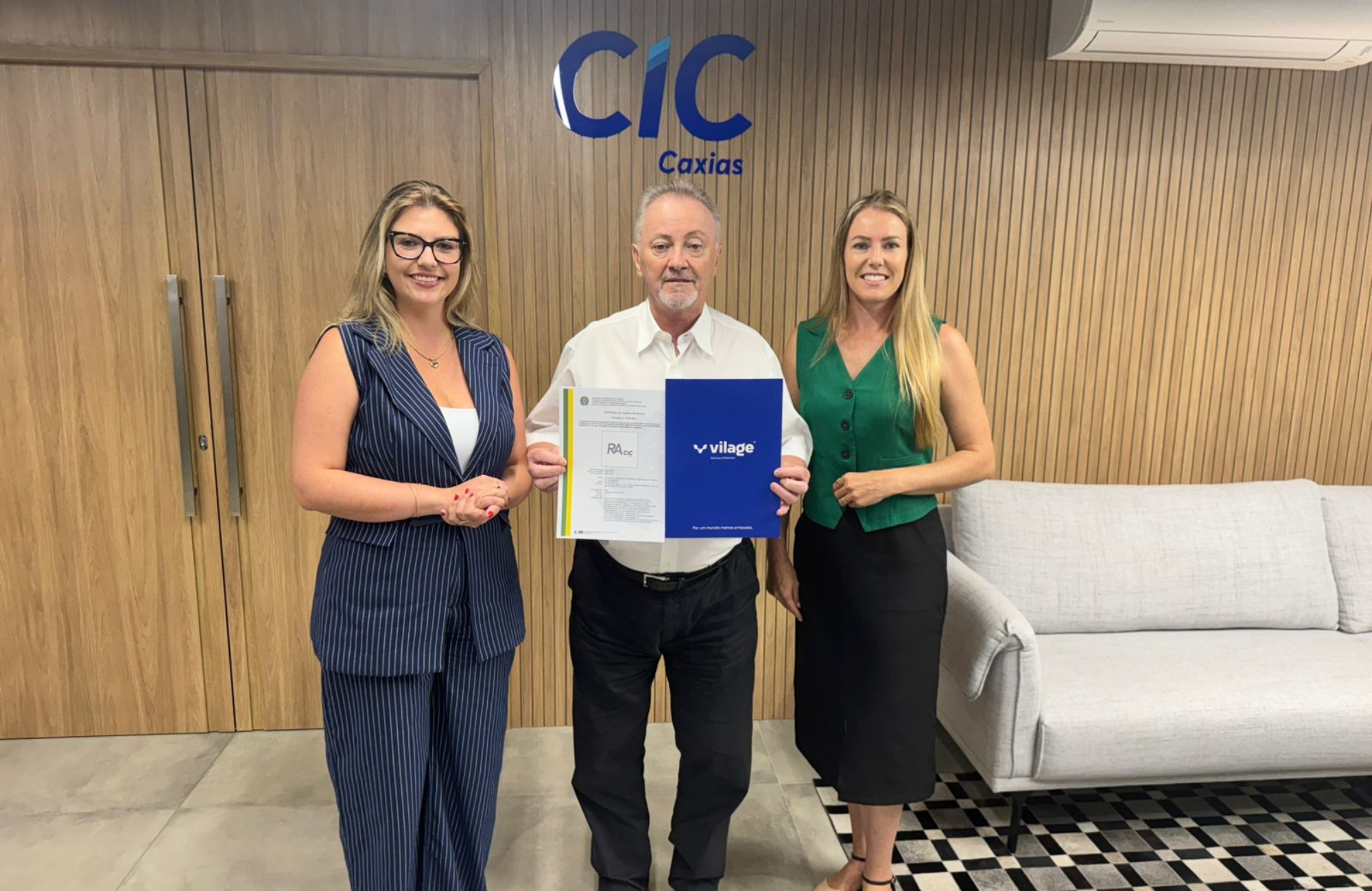 A entrega do certificado foi realizada pela diretora regional da empresa no Rio Grande do Sul da VILAGE, Fernanda Rauter, e pela consultora Aline Cechet, ao diretor-executivo da CIC Caxias, Gelson Dalberto, na última semana.