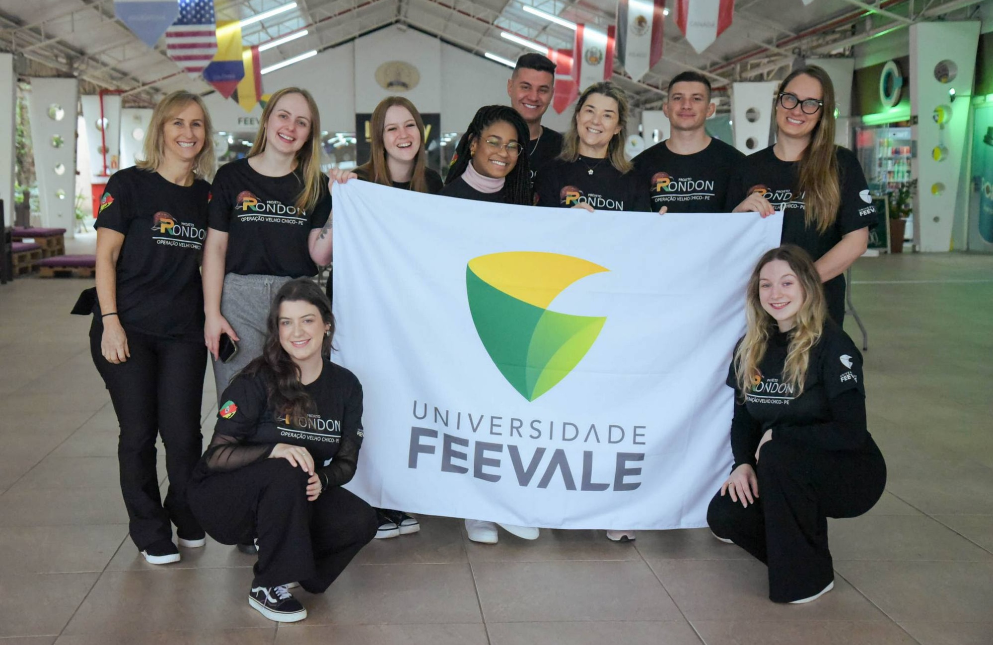 Acadêmicos e professores da Universidade Feevale embarcaram para Pernambuco nesta quarta-feira (3), para participar de uma operação do Projeto Rondon. Coordenada pelo Ministério da Defesa, a iniciativa visa contribuir com o desenvolvimento da cidadania nos estudantes universitários. A Feevale foi classificada, em primeiro lugar, para integrar a Operação Velho Chico, que acontecerá entre 4 e 21 de julho, no município de Exu, localizado no Sertão do Araripe. Um grupo de oito acadêmicos, de diferentes cursos da área da Saúde, junto das professoras Magali Pilz, do curso de Fisioterapia, e Maristela Cassia de Oliveira Peixoto, coordenadora do curso de Enfermagem, realizarão oficinas nas áreas temáticas do Conjunto A do projeto: Cultura, Direitos Humanos e Justiça, Educação e Saúde.