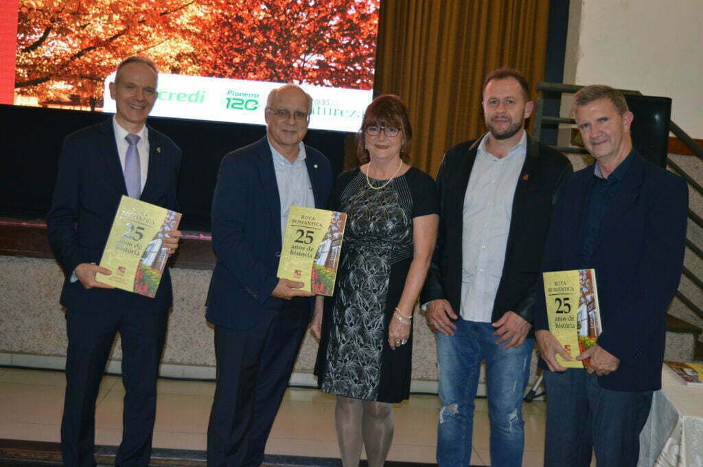 Os presentes também foram agraciados com o livro dos 25 anos da Rota Romântica. Um livro que congrega a história da entidade, mas, também, a participação dos municípios na construção do roteiro e o desenvolvimento das cidades a partir da consolidação da Rota Romântica. Os ex-Presidentes da Rota Romântica, além do livro, receberam um certificado de agradecimento pela sua contribuição.