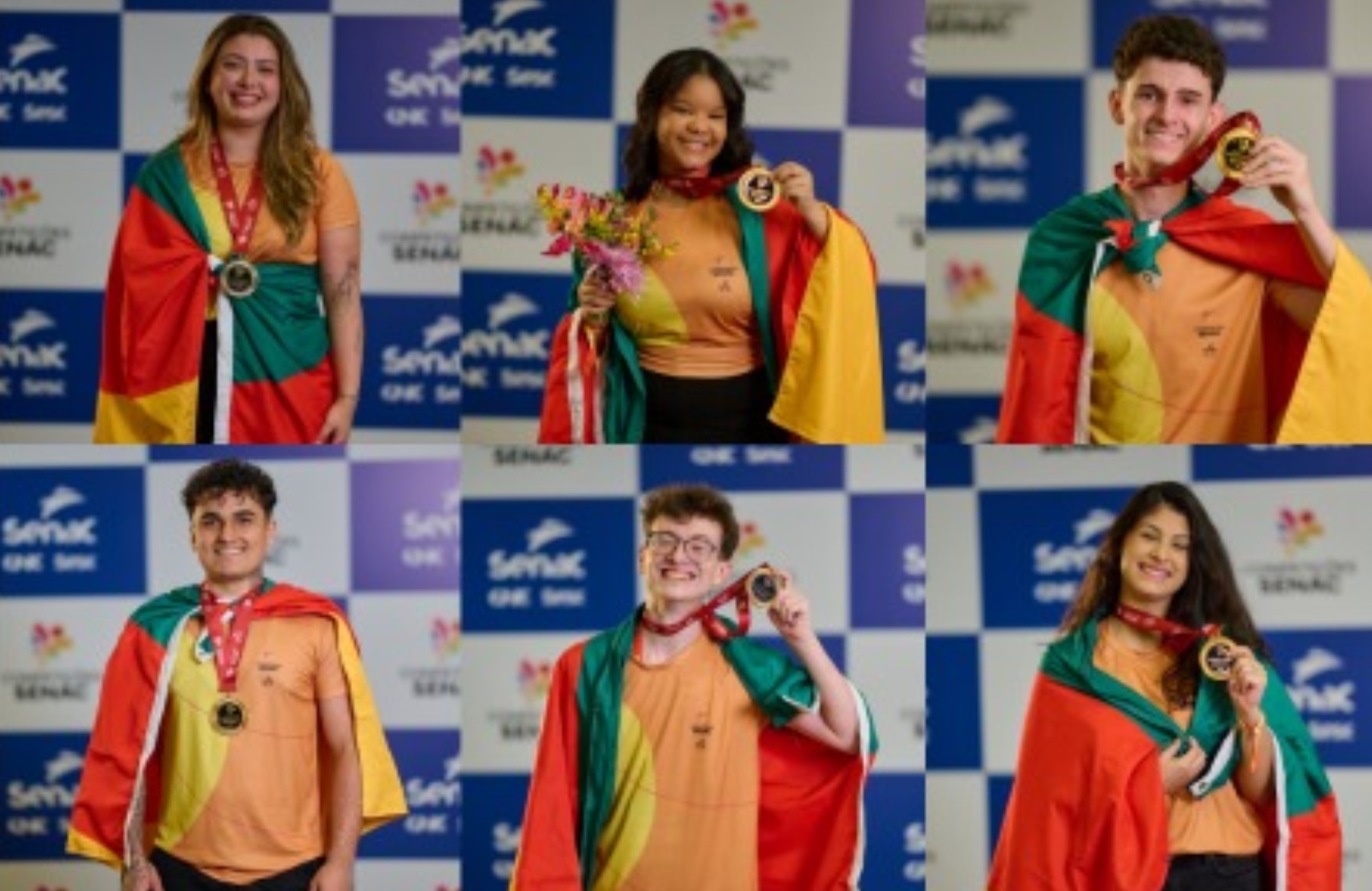 Os medalhistas gaúchos foram Gustavo Freitas Argoud (Cozinha, UniSenac Porto Alegre), Maria Eduarda Guerreiro da Silveira (Estética e Bem-estar, Senac Canoas), Natália da Rosa Corso (Recepção de Hotel, Senac Taquara), Beatriz Ribeiro dos Santos (Confeitaria, Senac Santa Cruz do Sul), Bruno César Silva de Souza (Desenvolvimento de Sistemas, Senac São Leopoldo) e Vinícius Alves Fantin (Aplicações Web e Mobile, Senac Caxias do Sul), todos com medalha de ouro.