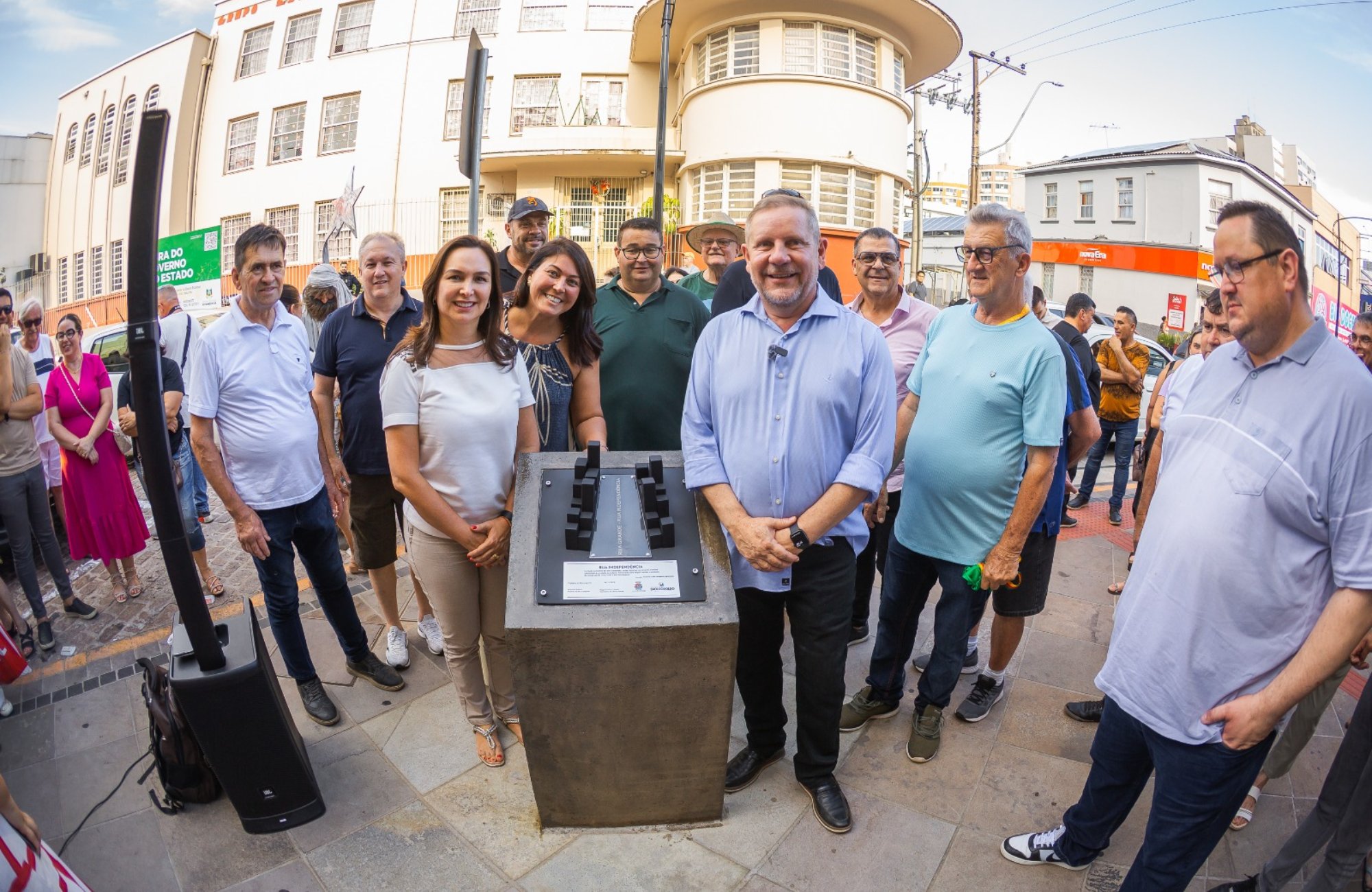 A Prefeitura de São Leopoldo inaugurou neste sábado (6), a Rua Independência, no centro da cidade, após concluir a revitalização de nove quadras da via, incluindo a Praça do Imigrante e o trecho onde fica a Câmara de Vereadores. O ato de inauguração foi realizado na esquina com a Rua Conceição, em frente à Ferragem Feldmann, e reuniu autoridades, comerciantes e moradores. A obra foi executada entre outubro de 2023 e 2025 e, de acordo com a administração, busca recuperar o movimento do comércio local após impactos da pandemia, da enchente e do período de obras.