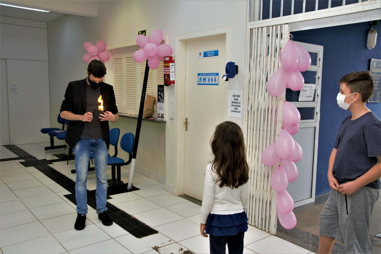 Acompanhado pela mãe, o garoto Erick Fael, de 9 anos, foi até a ESF Cohab para se imunizar da febre amarela na tarde deste sábado, 16. “Elas conferiram a caderneta de vacinação e está tudo em dia. Nem lembrei que ele já tinha feito”, contou a doméstica Lisiara Santos, de 31 anos. Feliz com a notícia, Erick aproveitou para acompanhar um show de mágica na sala de espera da unidade de saúde, realizado pelos mágicos Roberto Weiss Kist e Douglas Henrique Souza. “Muito legal, eu gosto de mágica”, revelou o menino.