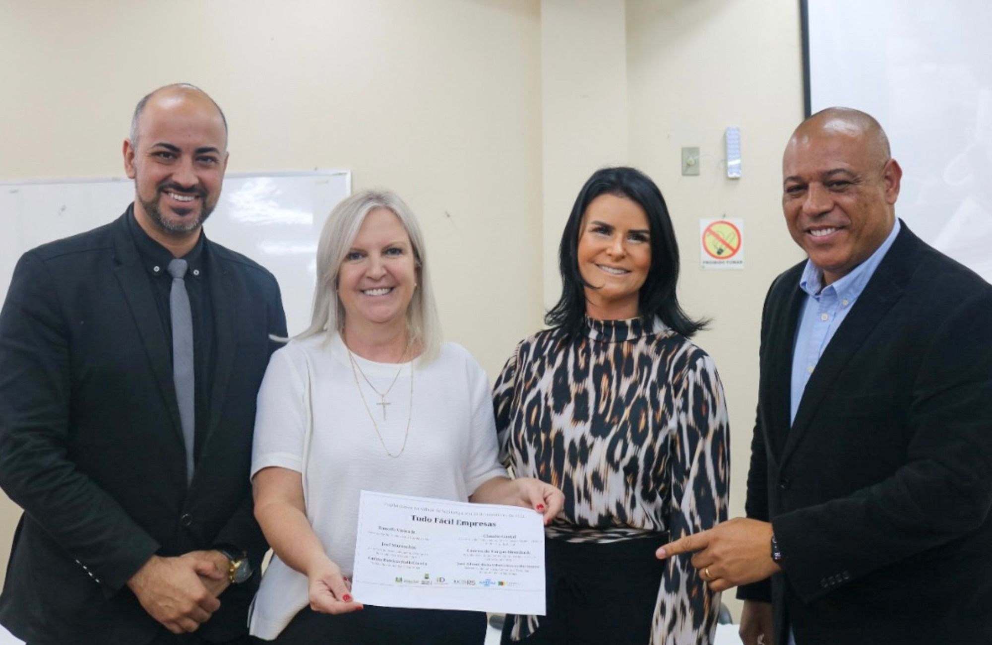 O lançamento do programa Tudo Fácil Empresas ocorreu em Sapiranga nesta terça-feira (22), no auditório Jacobina Maurer, na sede da Secretaria Municipal de Educação. O evento contou com a presença da prefeita Carina Nath, do secretário Municipal de Indústria, Comércio e Tecnologia, José Della dos Santos, do secretário de Desenvolvimento Econômico do Estado do Rio Grande do Sul, Joel Maraschin, da presidente da Junta Comercial Industrial e Serviços do RS, Lauren Momback, do secretário de Desenvolvimento de Panambi e presidente do Fórum Permanente de secretários de Desenvolvimento do RS, Rafael Jaques de Oliveira, da diretora-geral de Indústria e Comércio do Município, Alessandra Brando, do assessor de governo, Flademir Cardoso, além de representantes de entidades e contadores.