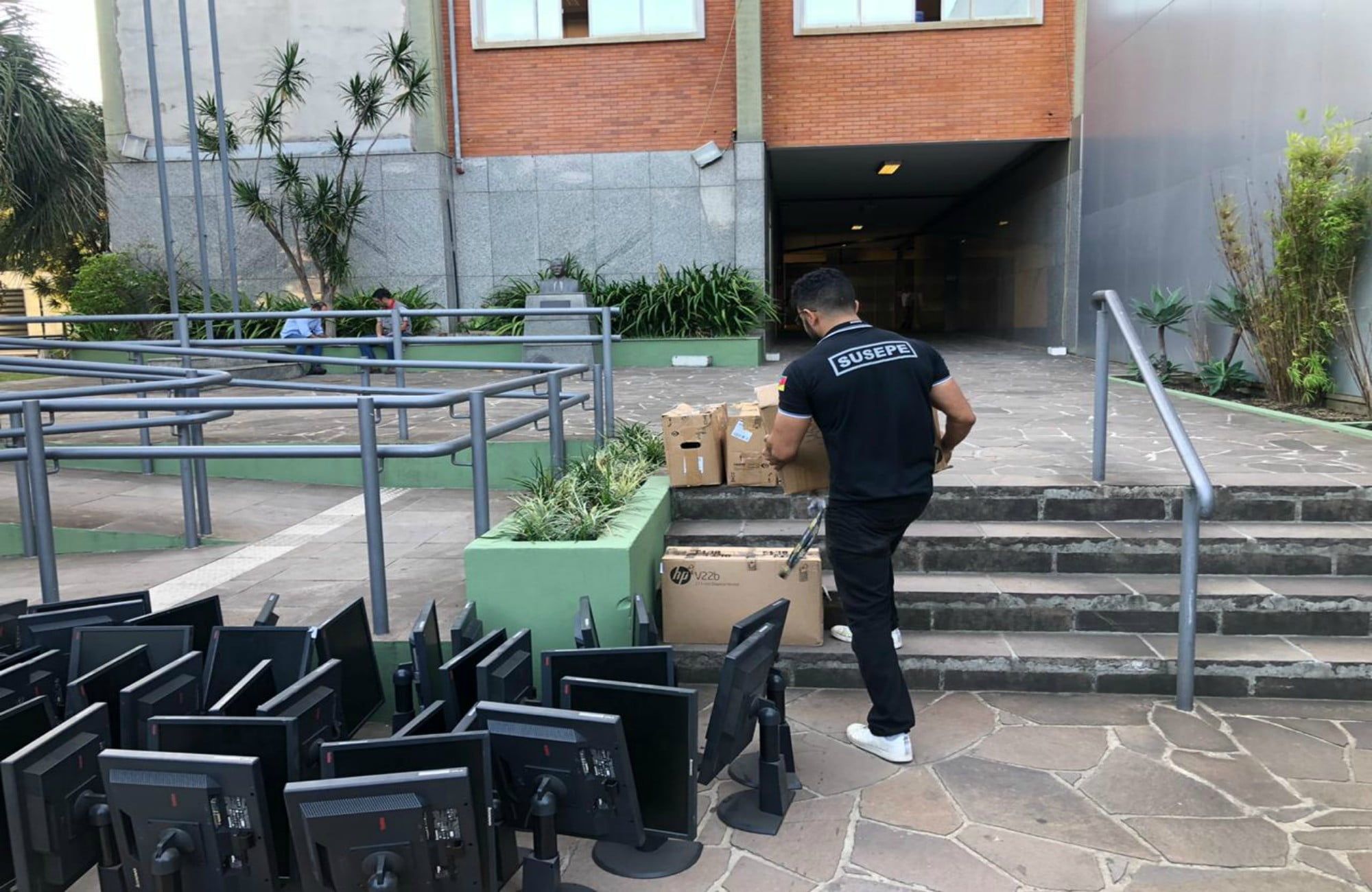 Na tarde desta quinta-feira, 23, a Seapen e a Susepe receberam, do Tribunal de Justiça do Estado do Rio Grande do Sul (TJRS), a doação de 150 computadores. Os equipamentos serão utilizados no projeto de televisitas que está sendo implantado nos presídios gaúchos, em função da suspensão temporária das visitas presenciais por causa do coronavírus.