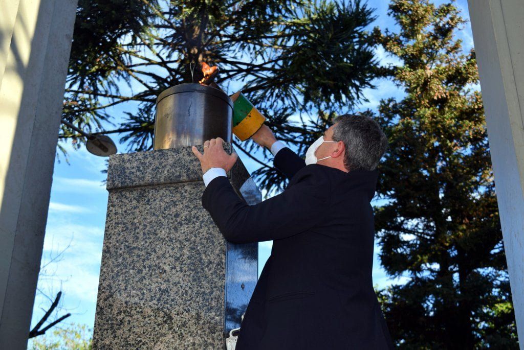 Ocorreu na manhã desta quarta-feira, 01 de setembro, no Monumento à Imigração Alemã, a abertura da programação da Semana da Pátria. O Fogo Simbólico, que estava no quartel da Brigada Militar, foi trazido até o Monumento à Imigração Alemã por alunos do projeto Vôlei Nova Petrópolis e foi recebido pelo prefeito Jorge Darlei Wolf.
