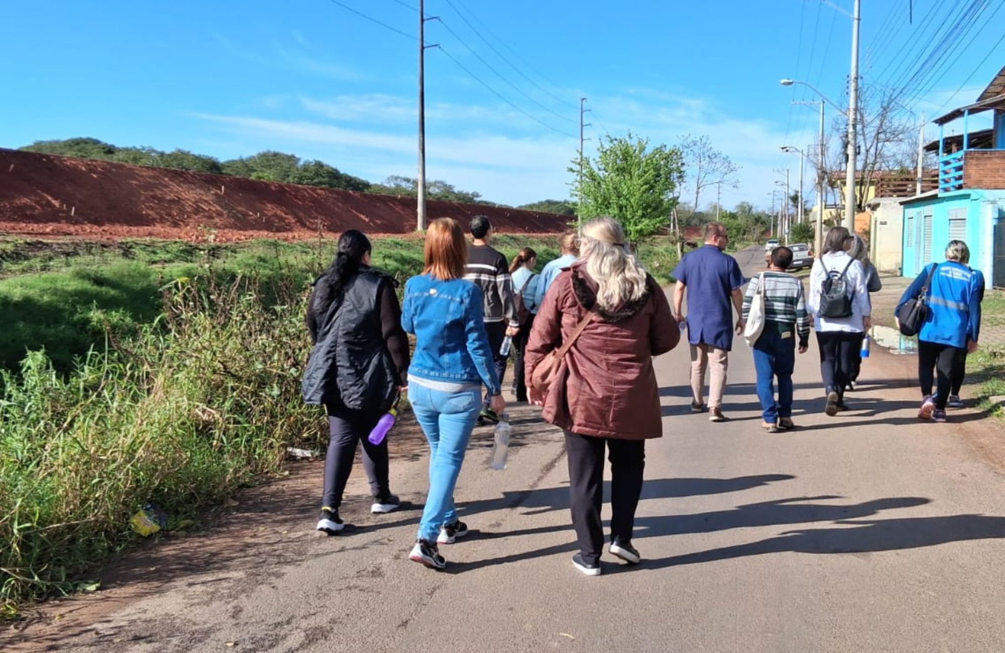 Servidores de Novo Hamburgo que participam do curso de atualização “Atenção Psicossocial em Desastres Socioambientais: o cuidado centrado nas pessoas pelos caminhos das águas” visitaram nesta quarta-feira (20) locais devastados pela enchente de 2024 nos bairros Canudos e Santo Afonso. A atividade integrou a etapa presencial da capacitação voltada ao fortalecimento do cuidado em saúde mental em territórios afetados por desastres.