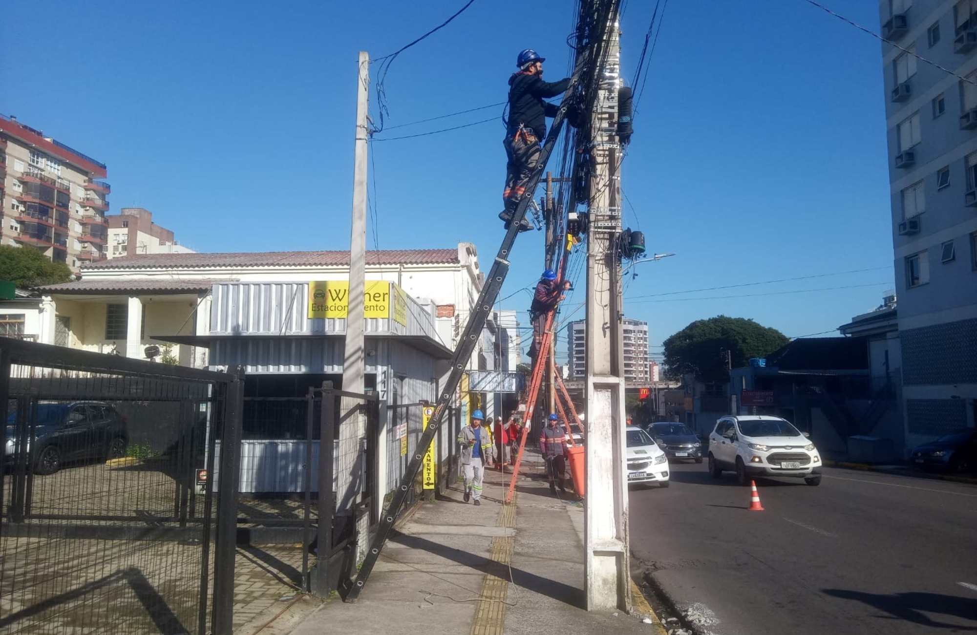 Sétima etapa da retirada de fios soltos em Novo Hamburgo é realizada na Rua Marcílio Dias