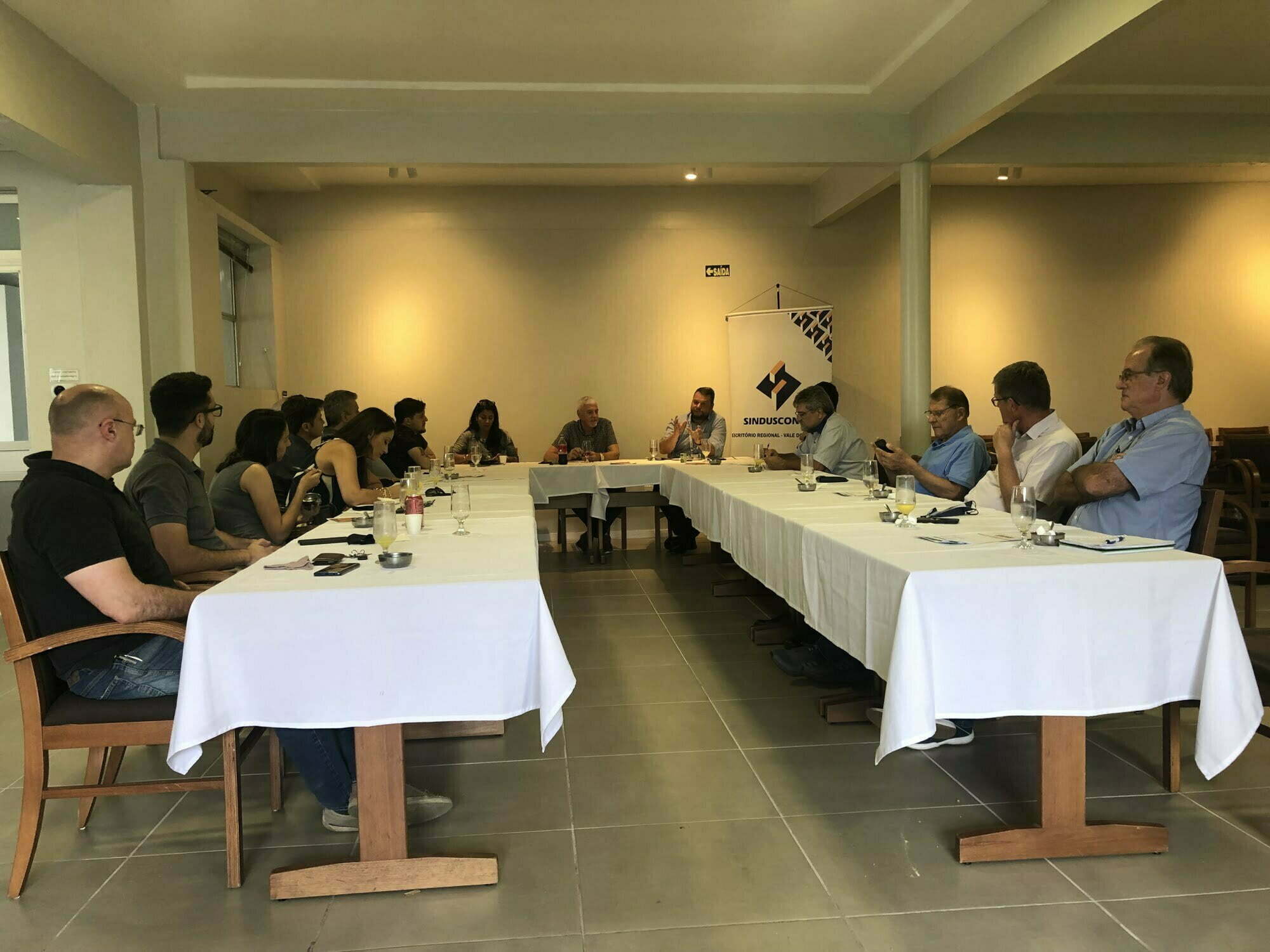 Em reunião-almoço do Escritório Regional Vale do Rio Pardo do Sindicato das Indústrias da Construção Civil do Rio Grande do Sul (Sinduscon-RS), na quinta-feira (25), na sede da entidade, um tema bastante relevante para o setor foi abordado: a qualificação de prestadores de serviços. Empresários e representantes da construção civil do município trocaram ideias com o diretor Operacional do Serviço Nacional de Aprendizagem Industrial do Rio Grande do Sul (Senai-RS) em Santa Cruz do Sul, Daniel Machado, com o propósito de buscar alternativas e parceria para a melhoria da mão-de-obra do segmento.