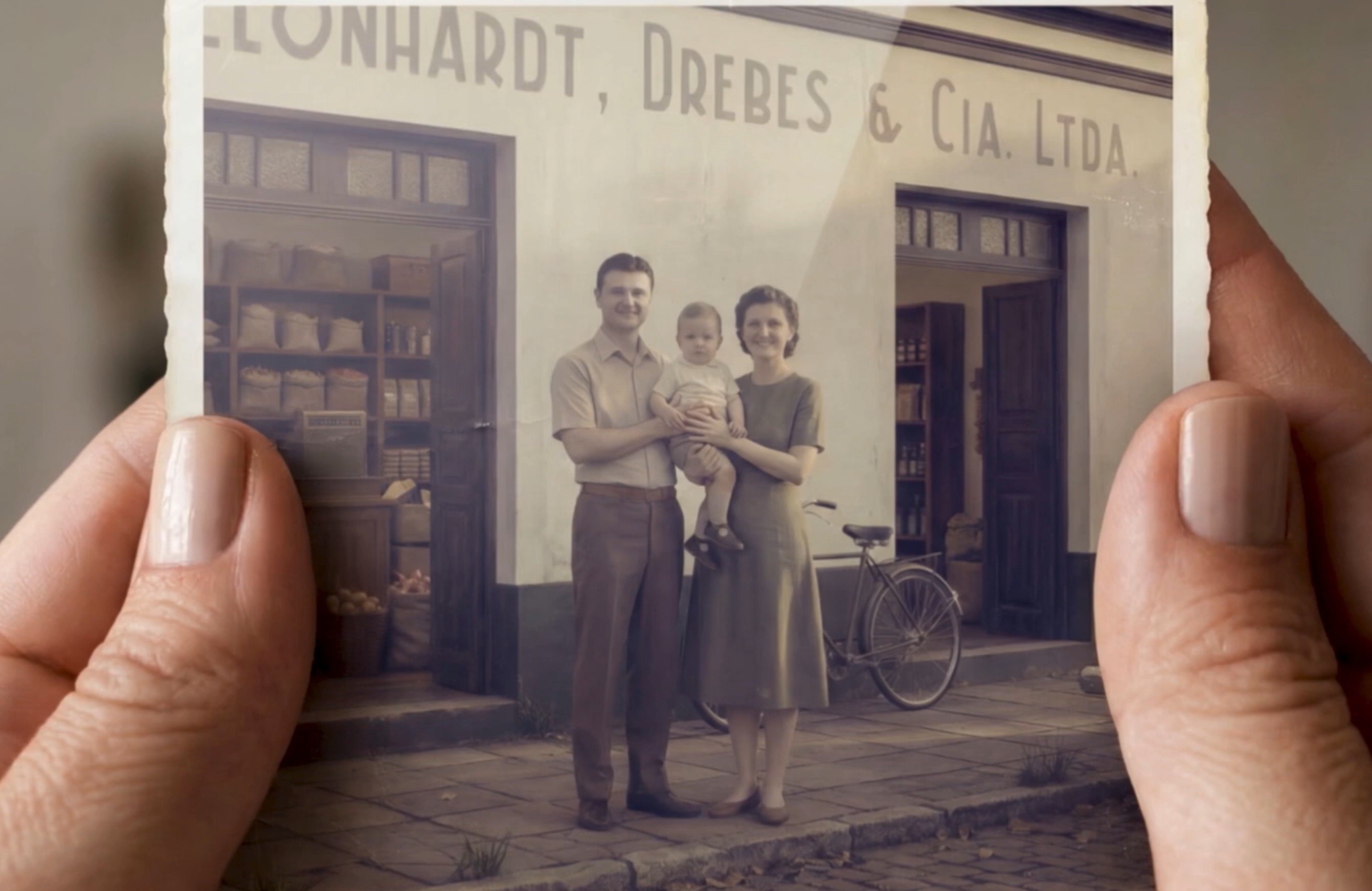 A narrativa começa na fundação da loja e acompanha sua evolução, em paralelo ao crescimento de uma família e de seu lar, viajando pelas décadas, até chegar aos dias de hoje, em que a família está reunida em um almoço. Com o uso de inteligência artificial, foi possível rejuvenescer atores e fundadores da Lebes, permitindo que essa travessia por sete décadas fosse contínua, fluida e visualmente verdadeira.