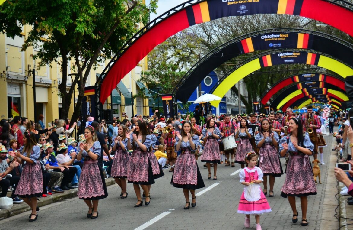 Na manhã deste domingo, 8 de outubro, a partir das 10h30, as quadras da Rua Marechal Floriano serão palco de uma verdadeira aula de cultura e tradição germânica. Inspirado na temática da festa Nossa História, Nosso Futuro, e com desenrolar a partir de nove verbos, o primeiro desfile temático da 38ª Oktoberfest – que inicia na esquina da Rua Ramiro Barcelos e encerra dentro do Parque da Oktoberfest – vai encher de cor e animação a via que é um dos principais cartões postais de Santa Cruz do Sul. Em caso de chuva, o desfile será transferido para a quinta-feira, feriado de 12 de outubro.
