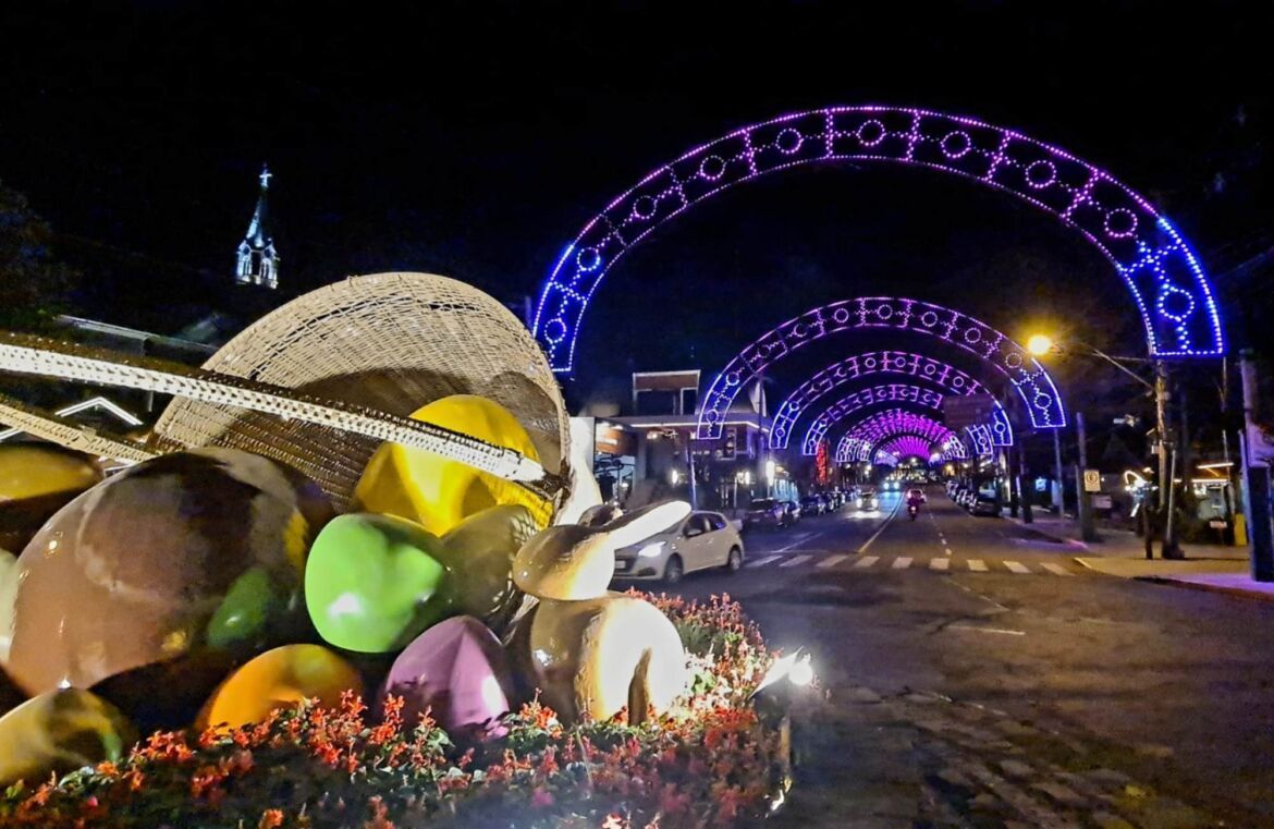 O clima da Páscoa começa a tomar conta das ruas de Gramado. Os adornos decorativos da 8ª Páscoa em Gramado, que começa mais cedo, estão sendo instalados nas principais ruas, rótulas, praças e nos dois pórticos de entrada da cidade. O evento ocorre de 9 de março a 9 de abril de 2023. Ovos de chocolate, cestas, aquarelas e coelhos gigantes já enfeitam a cidade.