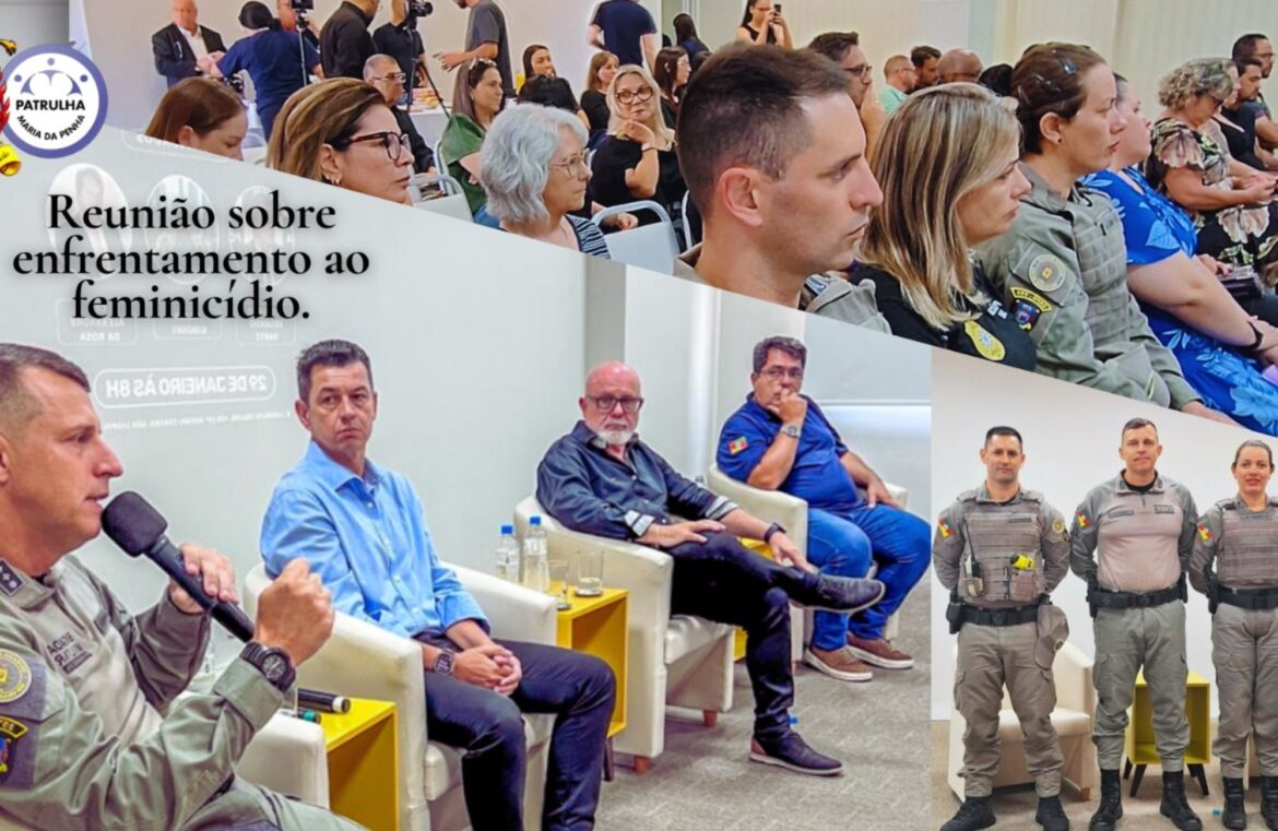 O comando do 25º Batalhão de Polícia Militar participou de uma reunião sobre o enfrentamento ao feminicídio promovida pela Acist São Leopoldo e pelo Consepro na manhã desta quinta-feira (29), na sede da entidade, no Centro de São Leopoldo. O encontro reuniu forças de segurança, representantes do poder público, lideranças empresariais e comunitárias, além da Patrulha Maria da Penha, com o objetivo de discutir ações de proteção às mulheres e prevenção da violência doméstica.