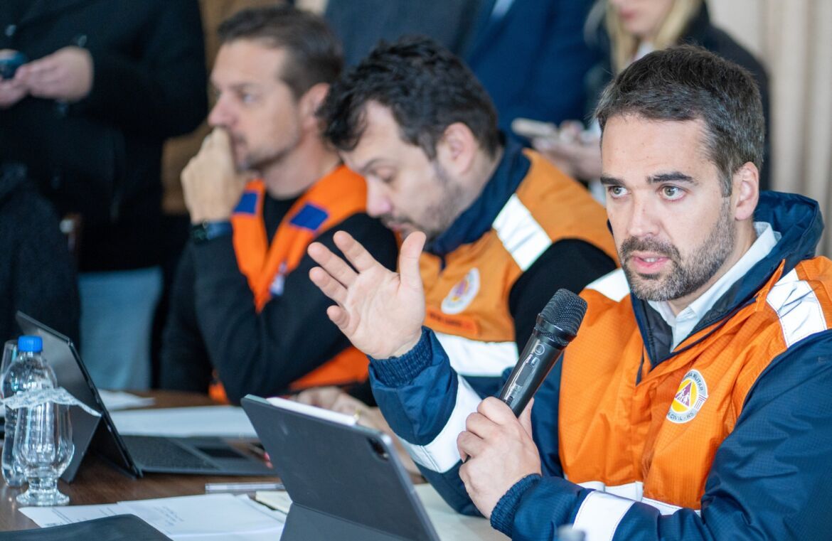 Em reunião realizada nesta quinta-feira (14), na prefeitura de Encantado, o governador Eduardo Leite, o vice-governador Gabriel Souza e o secretariado atualizaram informações e alinharam ações de reconstrução dos municípios do Vale do Taquari atingidos pelas inundações da semana passada. Durante o encontro, Gabriel, que lidera o Centro de Coordenação do Governo na região, apresentou um diagnóstico dos principais pontos a serem atendidos neste momento. O foco está direcionado para a situação de pessoas desabrigadas, ações de habitação e retomada das aulas, entre outras iniciativas que ocorrem de maneira integrada nos municípios.