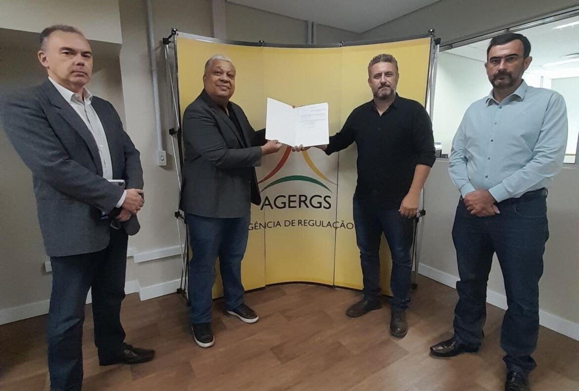 O prefeito de Montenegro, Gustavo Zanatta (Republicanos), esteve na sede da Agência Estadual de Regulação dos Serviços Públicos Delegados do Rio Grande do Sul (Agergs), em Porto Alegre, na tarde desta terça-feira (23), para tratar de falhas na prestação do serviço de abastecimento de água no município. Acompanhado do gerente de Contratos da Prefeitura, Sílvio Kael, e do assessor da Secretaria de Planejamento, Rafael Cruz, o chefe do executivo montenegrino apresentou reclamações de moradores e pediu apoio da agência reguladora para cobrar providências da concessionária Corsan/Aegea.
