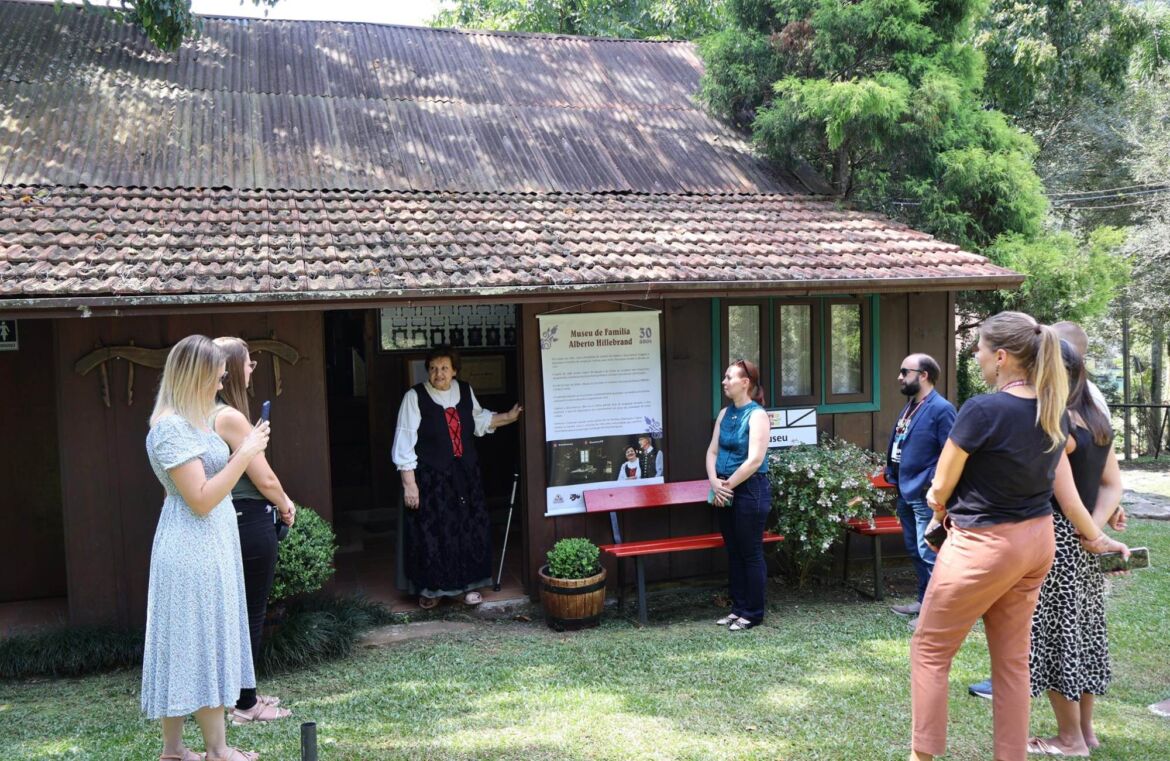 O roteiro começou no Museu da Família Alberto Hillebrand, localizado na Linha Imperial. O grupo foi recebido por Adélia Hillebrand e conheceu o acervo formado por objetos de uso pessoal e baús de madeira originais utilizados pelos imigrantes durante a travessia do Oceano Atlântico.
