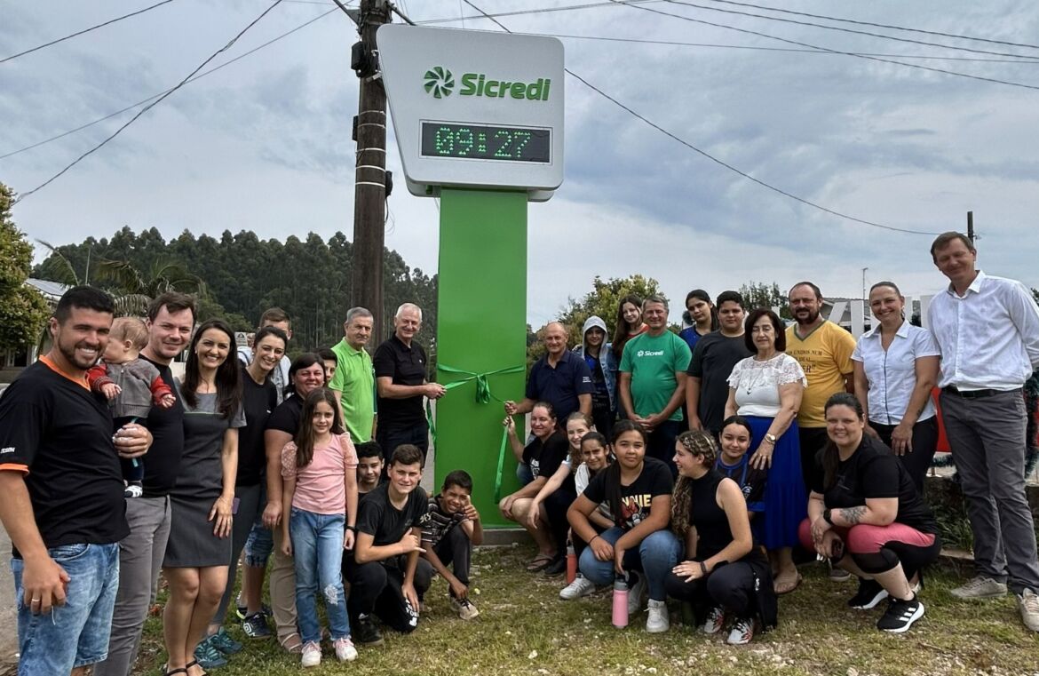 A Sicredi Vale do Rio Pardo inaugurou um relógio digital na praça do distrito de Alto Paredão, em Santa Cruz do Sul, na manhã desta segunda-feira (8). O equipamento exibe hora, data, temperatura e mensagens de utilidade pública. A solenidade de inauguração contou com a presença de autoridades, associados e colaboradores da cooperativa.