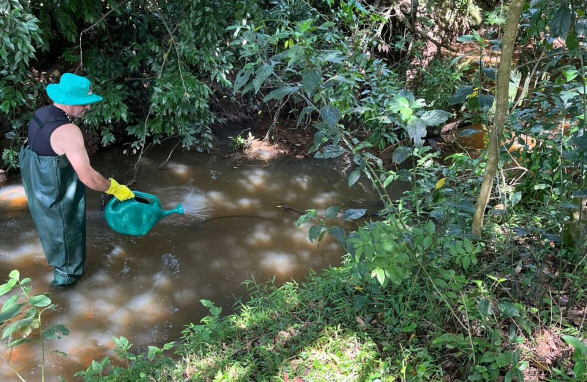 A ação integra o cronograma de controle de vetores do município e mobilizou agentes de combate a endemias, responsáveis pela aplicação do produto, além do acompanhamento técnico realizado por bióloga da Vigilância em Saúde. Os trabalhos incluíram a circulação por áreas de difícil acesso, o monitoramento da vazão das águas e a identificação de possíveis ocorrências.