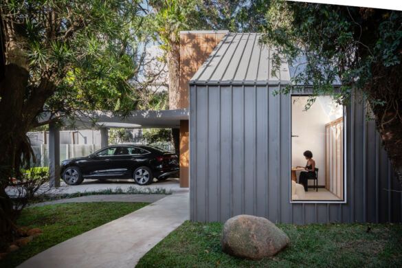 Assinada pelo arquiteto gaúcho Saymon Dall Alba, nome à frente do Estúdio Saymon Dall Alba, a cabana une o conforto do glamping (espécie de “camping com glamour”), com a tecnologia da Audi Top Car. No espaço, é exposto um modelo 100% elétrico da Audi: e-tron Sportback Performance no valor de 646.9990. Em meio ao cenário urbano do terreno que abriga a mostra, a construção foi integrada à vegetação preservada através dos traços característicos do trabalho do arquiteto, especializado na criação de cabanas e hospedagens de alto padrão.
