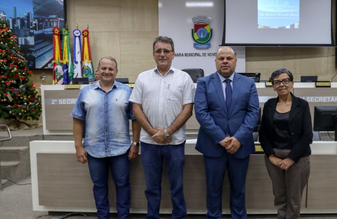 Treze empresas com atuação consolidada na cidade tiveram suas trajetórias reconhecidas pela Câmara de Novo Hamburgo na noite da última quinta-feira (5). Em sessão solene realizada no Plenário do Legislativo, os vereadores se reuniram para a entrega da Honraria Empresarial Júlio Redecker. Na edição deste ano, foram homenageadas iniciativas nos segmentos de reciclagem, arquitetura, gastronomia, portaria, calçados, materiais gráficos e revenda automotiva. Cada empresa foi indicada por um parlamentar, que pôde utilizar a tribuna para justificar a escolha.