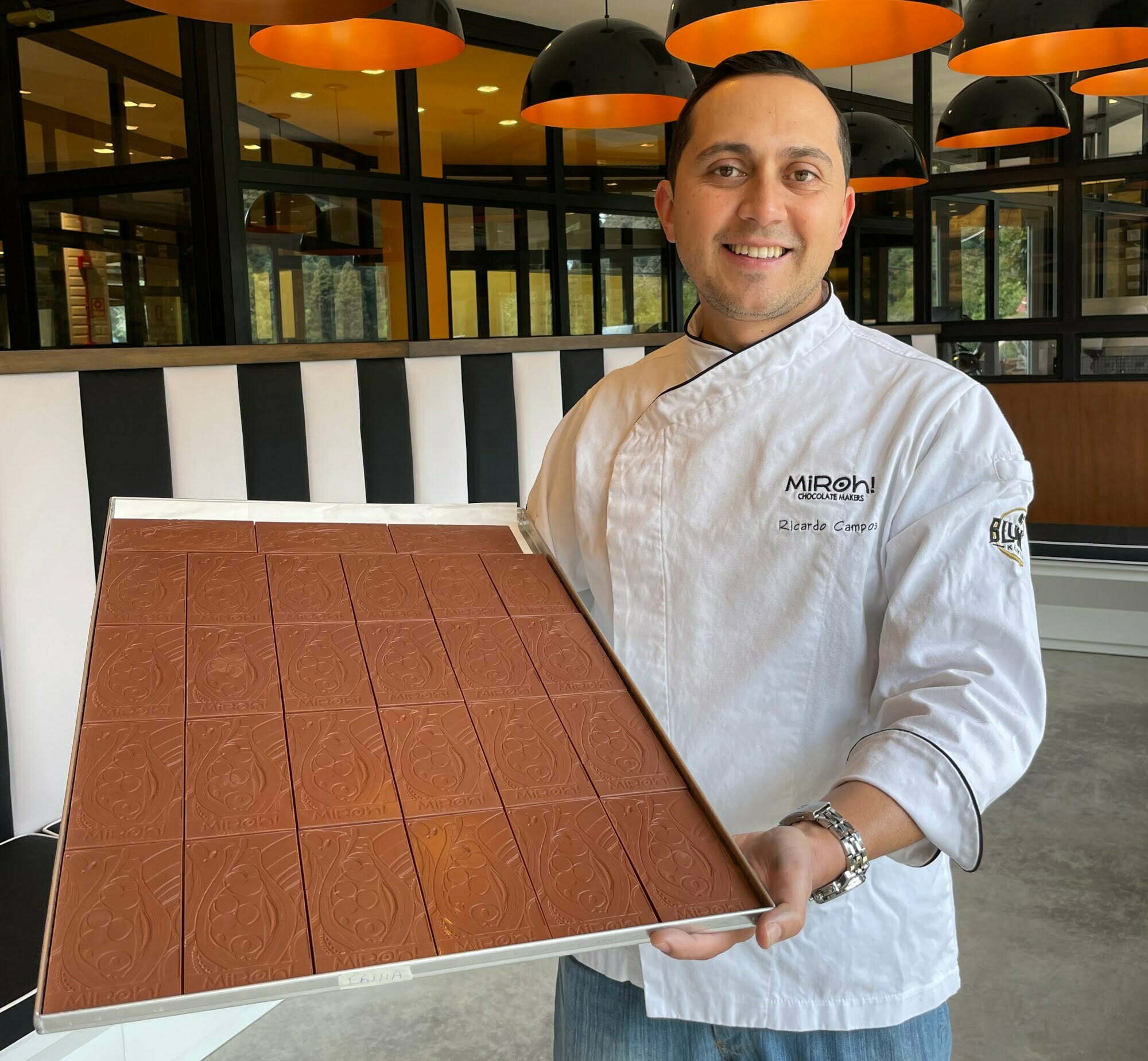 Ricardo Campos se apaixonou por harmonização entre pratos e bebidas na matéria de Enologia, quando cursava Gastronomia na Escola de Turismo, Hotelaria e Gastronomia do CETT, em Barcelona. Desde então, vem aplicando seus conhecimentos para encontrar o equilíbrio entre vinhos e espumantes com os chocolates produzidos no seu atelier.