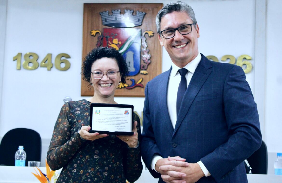 Promotora Mara Cristiane Job Beck Pedro recebe o título de Cidadã Leopoldense