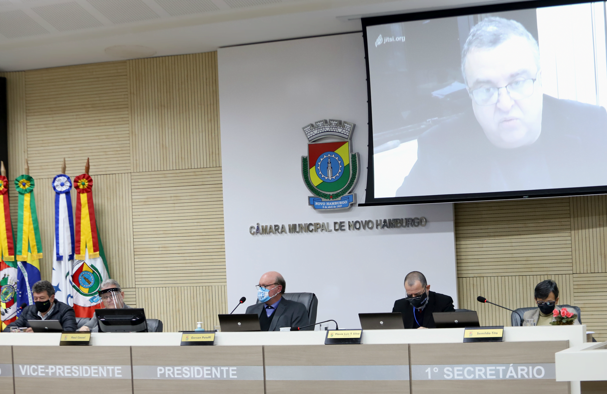 Por videoconferência, o secretário municipal da Fazenda, Gilberto dos Reis, falou sobre as ações e a utilização dos R$ 24,5 milhões em recursos federais disponibilizados a Novo Hamburgo para o combate ao coronavírus. Em relação ao montante da Assistência Social, preocupação sinalizada em vários questionamentos de parlamentares, a previsão é de um pouco mais de R$ 4 milhões, sendo que 3,5 milhões já chegaram aos cofres municipais, conforme o titular da pasta. Para aquisição de cestas básicas, foram empenhados mais de R$ 532 mil. Ele foi convocado para a sessão desta segunda, 31, por meio do Requerimento N° 682/2020, de Patricia Beck e Felipe Kuhn Braun, ambos do PP.