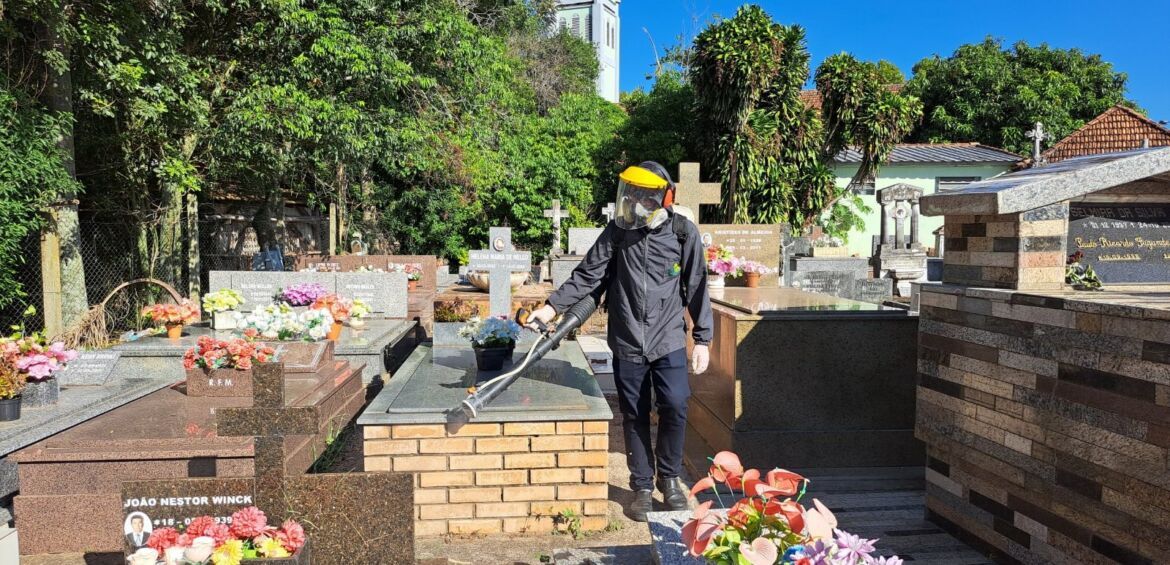 A Prefeitura de Novo Hamburgo concluiu nesta quarta-feira, (29), a aplicação de inseticida nos 20 pontos estratégicos, como oficinas, ferros-velhos, reciclagens, borracharias, floriculturas e cemitérios, no combate ao mosquito aedes aegypti, causador da dengue, na cidade. Depois de passar pelo Cemitério Municipal e outros pontos da zona urbana, a ação foi realizada em Lomba Grande (Cemitério da Paróquia São José e na Floricultura Girassol), e ainda será retomada em locais já visitados