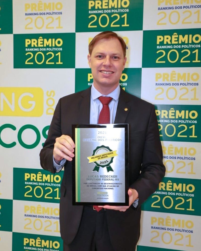Pelo terceiro ano consecutivo, o deputado federal Lucas Redecker foi premiado como um dos melhores parlamentares do Brasil, de acordo com o Ranking dos Políticos. Em cerimônia realizada nesta quarta-feira, em Brasília, Redecker conquistou o segundo lugar entre os deputados gaúchos e a quinta colocação entre todos os deputados da Câmara. Na classificação nacional, o presidente do PSDB-RS ficou entre os doze parlamentares que mais se destacaram no Congresso.