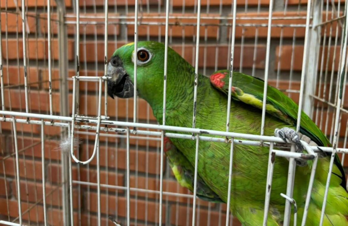 O papagaio-verdadeiro, espécie nativa brasileira conhecida pela capacidade de imitar sons e pela longevidade, também foi localizado no imóvel. Conforme avaliação preliminar, o animal tem aproximadamente 20 anos de idade. A espécie pode viver entre 70 e 80 anos.
