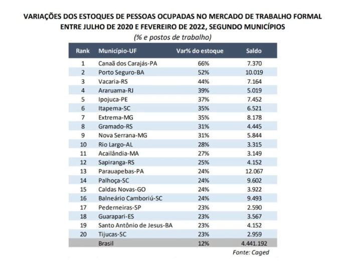 O terceiro empregador do setor é a Bahia, que criou 4,25 mil postos nos cinco primeiros meses do ano, encerrando maio com 39,94 mil pessoas empregadas na atividade, 31% mais do que no mesmo mês de 2021.