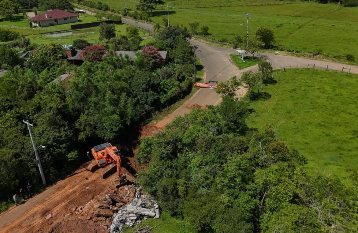 A Prefeitura de Novo Hamburgo iniciou a reconstrução da ponte na Estrada Rotermund, no bairro Lomba Grande, nesta segunda-feira (19). O espaço estava totalmente interditado desde setembro de 2025 devido a danos severos na fundação. A previsão é de que a conclusão da nova travessia se dê até o mês de março. A obra ocorre com investimento de recursos próprios do município.
