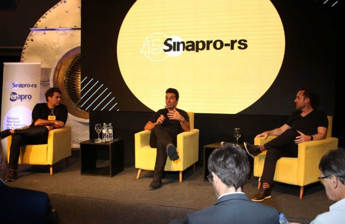 Um fórum à altura da relevância dos 45 anos do Sistema Nacional das Agências de Propaganda do Rio Grande do Sul (Sinapro-RS). Assim pode ser resumido o Frente a Frente Especial dos 45 anos do Sinapro-RS, realizado no dia 16 de agosto (quarta-feira), no Instituto Caldeira, em Porto Alegre. O principal fórum de lideranças do mercado publicitário gaúcho teve casa cheia com a presença expressiva de 140 líderes das principais agências do RS, presidentes dos Sinapros de todo país e diretores da Federação Nacional das Agências de Propaganda (Fenapro), além do presidente da entidade Daniel Queiroz.