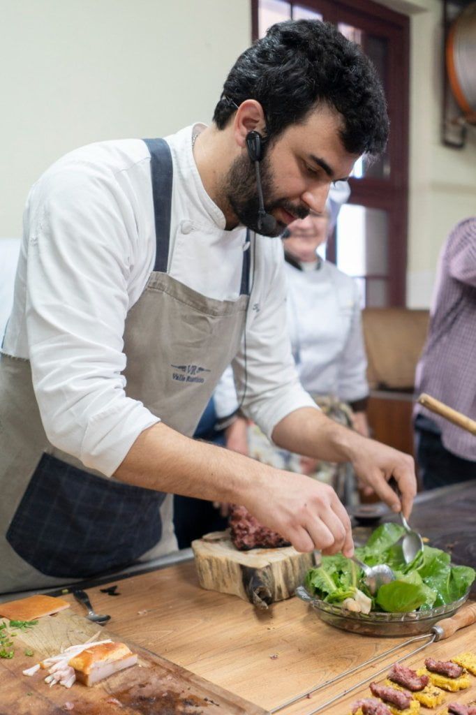 Para curtir cada atração do evento a dica inicial foi se refrescar nas ilhas de espumantes das vinícolas Casa Valduga, Cooperativa Vinícola Garibaldi, Miolo e Salton, além da Cerveja Bella Vista. Aos poucos, as pessoas foram saboreando as delícias feitas pelos chefs regionais Catherine Tedesco, Rodrigo Bellora, Giordano Tarso, Altemir Pessali e Fábio Giovanaz. Um bom começou foi a Estação Marrom que apresentou uma seleção de pães, patês, geleias, fermentados, frutas frescas e frutas desidratadas artesanalmente. Depois, a Estação Verde trouxe novas cores e aromas com salada de folhas, flores, brotos, crocante de castanha e gergelim, molho pesto de talo de cenoura, redução de balsâmico e ceaser defumado, além de gaspacho de frutas vermelhas com palitinho de pepino.