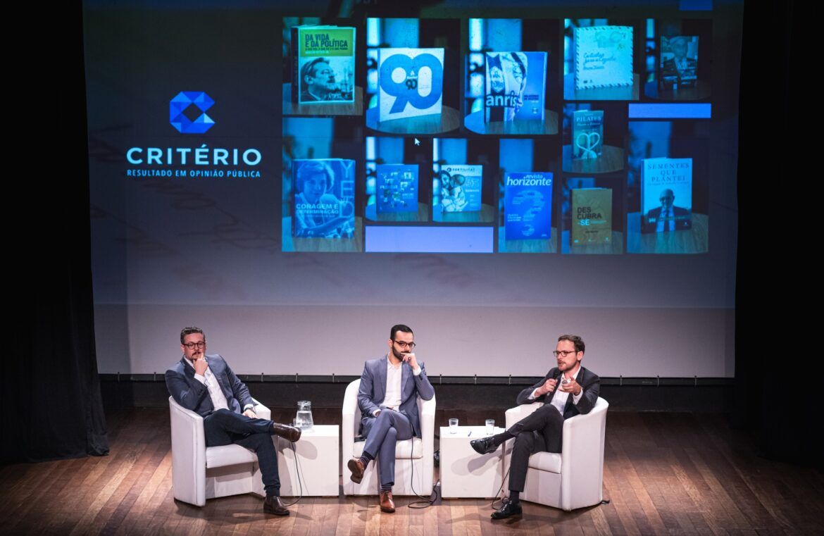 Os sócios-diretores da Critério Resultado em Opinião Pública, Rafael Codonho e Tomás Adam, e o consultor associado Mateus Colombo Mendes, conversaram sobre o ofício com o público e ofereceram um panorama da profissão, que ainda tem muito potencial a ser descoberto. O bate-papo ocorreu no auditório Barbosa Lessa, do Espaço Força e Luz. “É um orgulho estarmos em um painel nesse evento, que é um dos patrimônios culturais de Porto Alegre, do Rio Grande do Sul e até mesmo do Brasil”, disse Codonho.