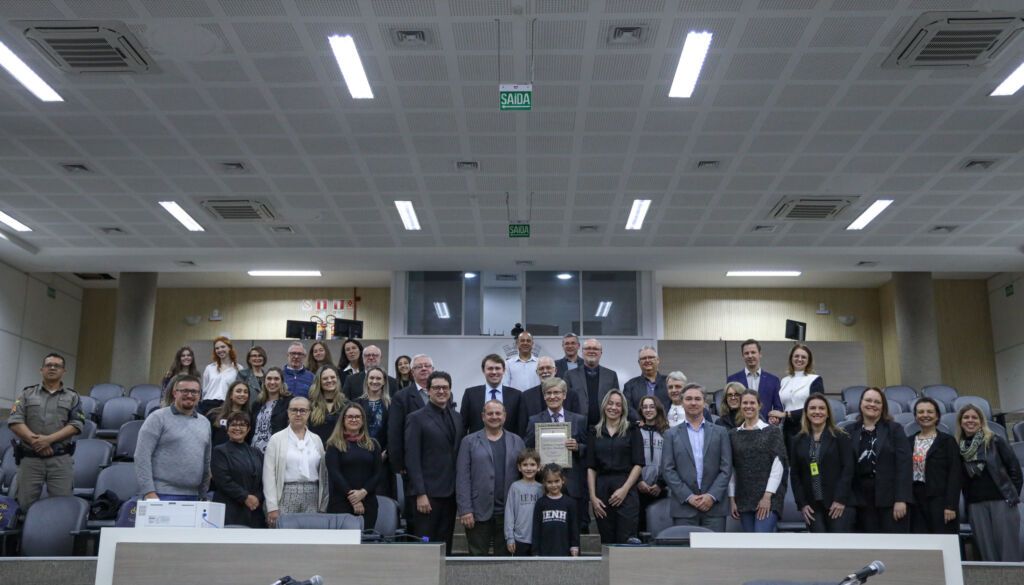 Em 1832, imigrantes alemães fundaram em Hamburgo Velho a escola que daria origem, décadas mais tarde, à instituição. Passados 190 anos, a IENH cresceu, inaugurou novas unidades, expandiu suas modalidades de ensino e se consolidou com um dos principais polos educacionais da região. O presidente da Câmara, Cristiano Coller (PTB), destacou que a instituição tem o dobro da idade do município de Novo Hamburgo. Ele ainda parabenizou o colega Felipe pela importância da homenagem e agradeceu a presença de todos.