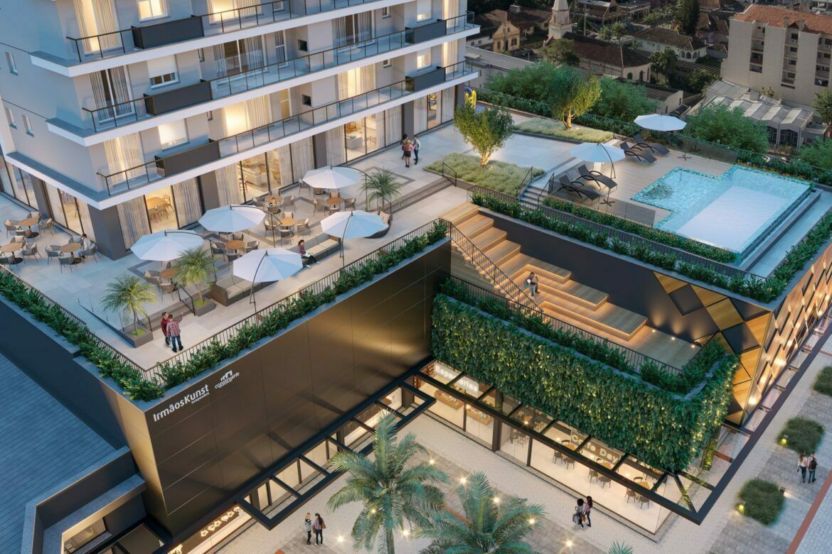Com um projeto contemporâneo, assinado pelo arquiteto Gustavo Kunst, o Edifício Athos foi pensado para quem busca harmonizar sofisticação e estilo de vida. O empreendimento conta com apartamentos de até 390 m² de área privativa, lounge com vista privilegiada, amplo salão de festas com terraço, piscina aquecida com vista panorâmica, jardim das oliveiras, chimarródromo e terraço fitness.