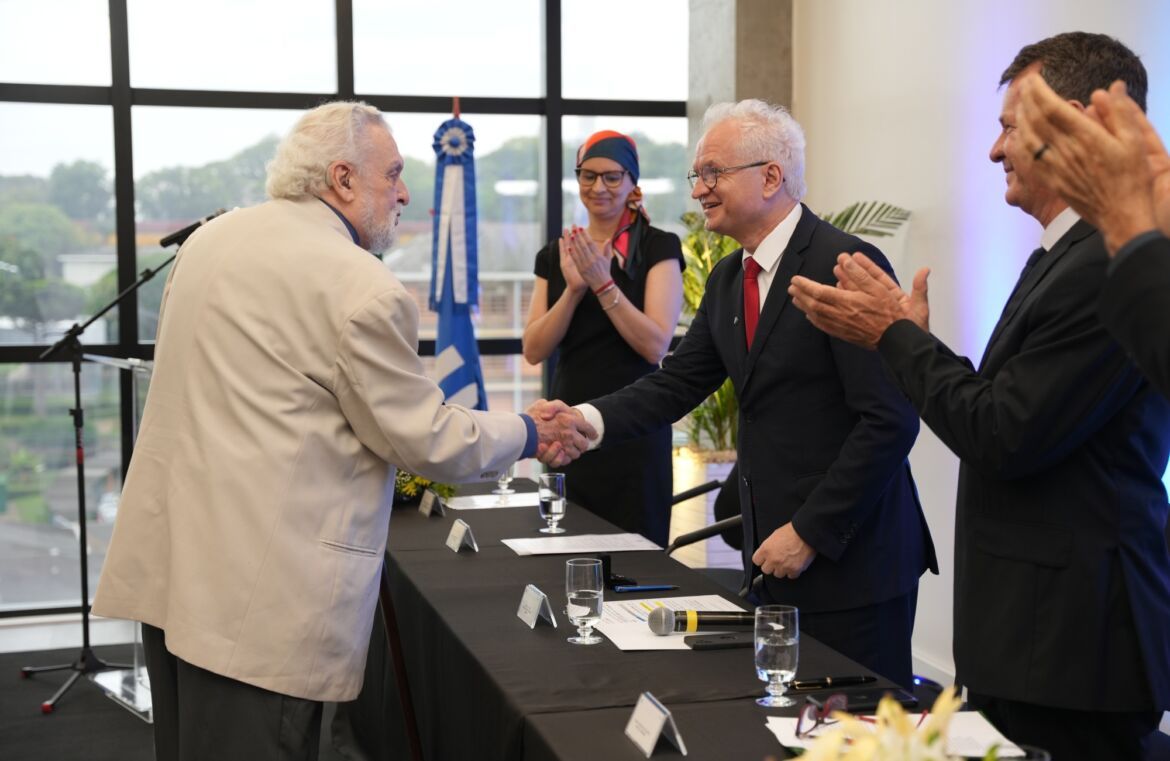 Krischke agradeceu a homenagem e estendeu-a a seus colegas do Movimento. “Sinto-me honradíssimo com essa láurea que a Unisinos me confere. É uma honra enorme, mas, por uma questão de justiça, ela deve ser compartilhada, pois não cabe apenas à minha pessoa”, afirma. “Todo esse trabalho é fruto de um grupo de pessoas, em especial meus companheiros do MJDH”, destacou, que também agradeceu à família”, acrescenta. Estiveram presentes o reitor da Unisinos, Pe. Sergio Mariucci; o decano da Escola de Humanidades, Luiz Rohden; a coordenadora do Núcleo de Direitos Humanos da Unisinos, Fernanda Frizzo Bragato; e o coordenador da Cátedra Unesco de Direitos Humanos, Castor Mari Martín Bartolomé Ruiz.