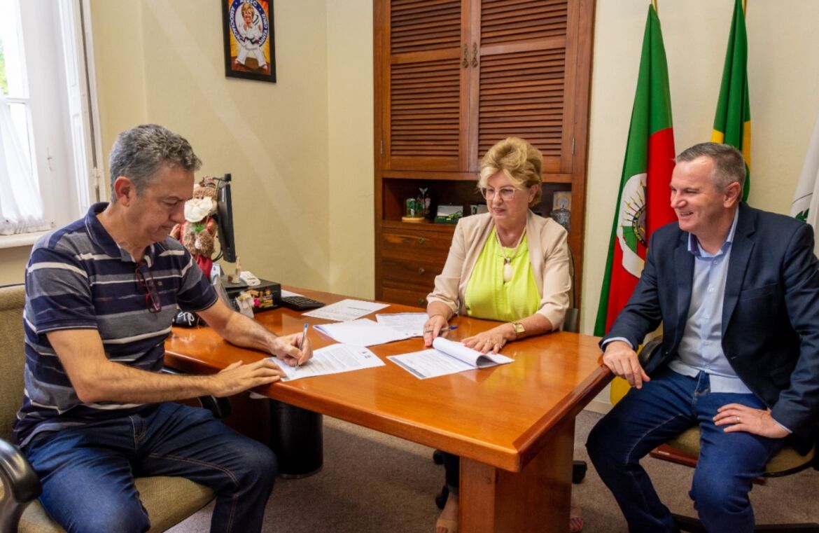 A prefeita Helena Hermany, acompanhada pelo vice, Elstor Desbessell, assinou, na quinta-feira (28), o contrato com a empresa K&G Construções LTDA, vencedora da licitação para executar a construção do futuro Centro Administrativo 2, que ficará localizado na esquina das ruas Coronel Oscar Jost e 28 de Outubro. O valor total da obra é de R$ 25.900.255,11. Composto por sete pavimentos, o prédio deve ser concluído em 21 meses. A edificação inclui elevadores, climatização e reaproveitamento de água da chuva, além da execução de todos os acabamentos, instalações, banheiros e copas. O projeto também prevê a instalação de piso elevado e forro rebaixado, de maneira a facilitar as alterações de layout ao longo do tempo.