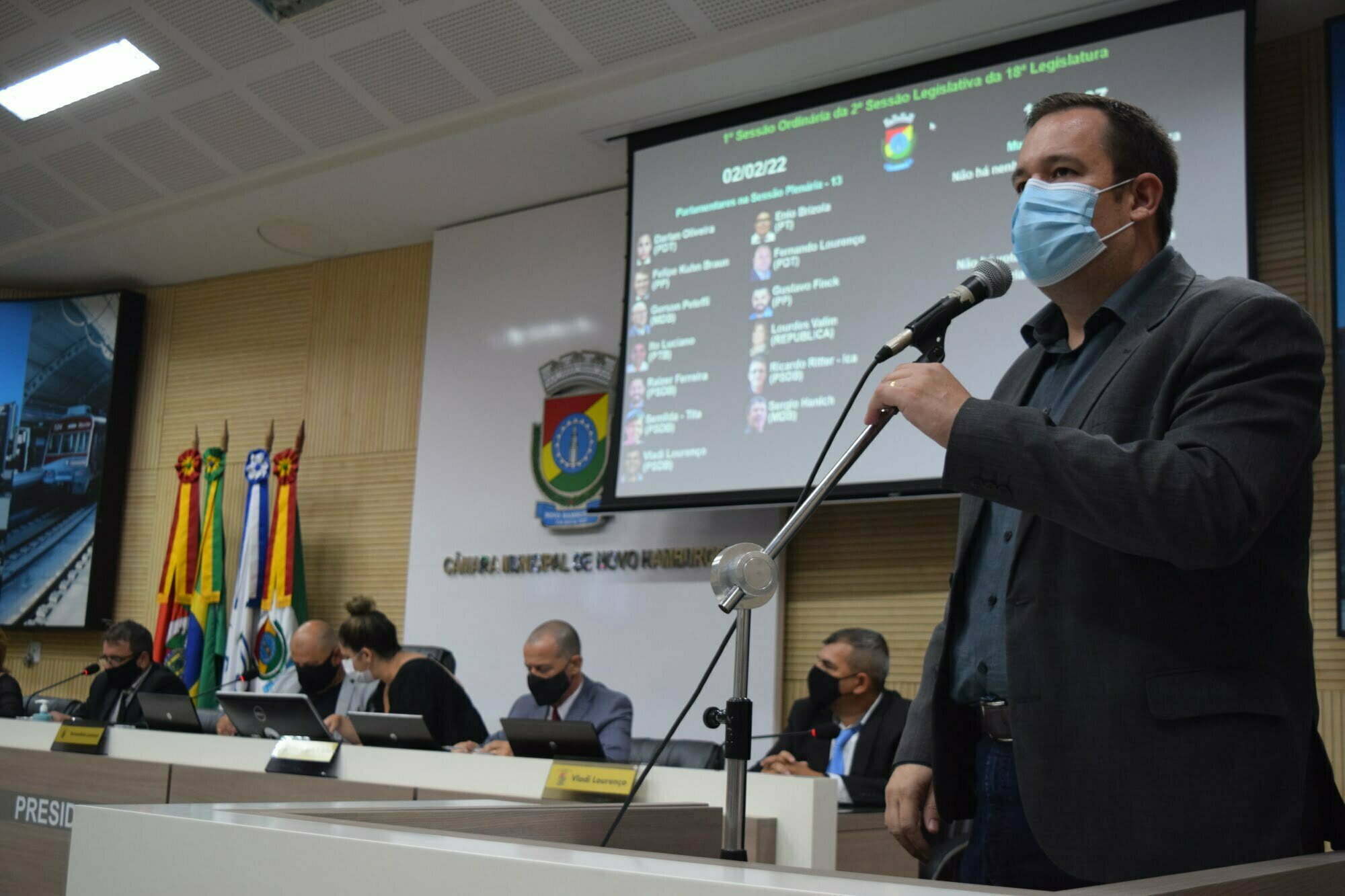 O prefeito em exercício, Márcio Lüders, esteve, na tarde desta quarta-feira (2), na Câmara de Vereadores de Novo Hamburgo, durante a abertura do ano legislativo. Ao discursar, no início da sessão, saudou os vereadores, além desejar boa sorte no ano, citou a importância do trabalho de forma unida, entre os poderes Executivo e Legislativo, para desenvolvimento do município. “Só unidos, senhores e senhoras, junto com nossa comunidade hamburguense, vamos de fato conseguir cada vez mais a melhora dos nossos índices, não só na economia mas em todos os serviços prestados pela administração municipal. Um excelente ano legislativo. Muito obrigado”, falou Márcio.