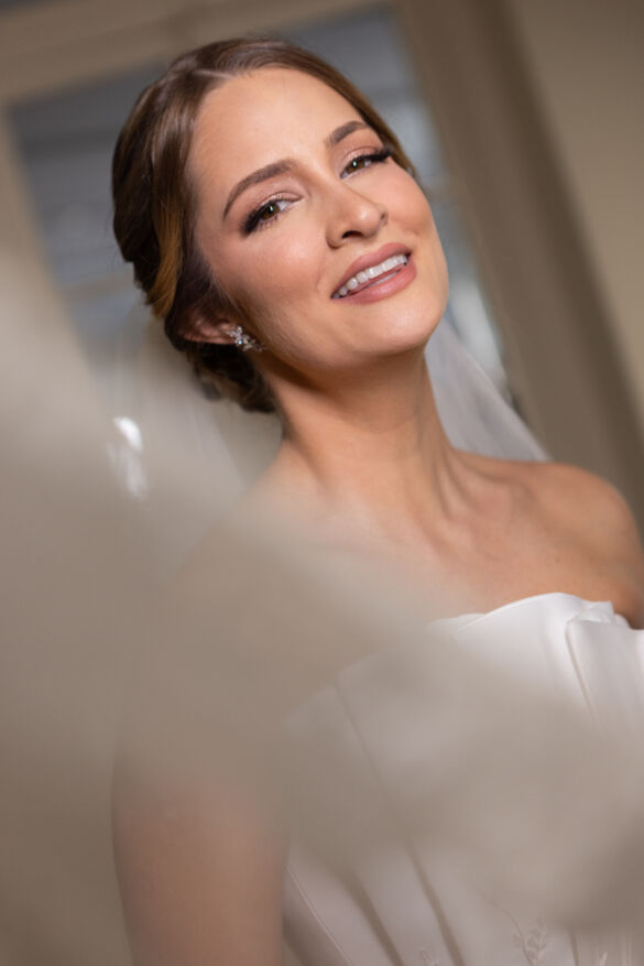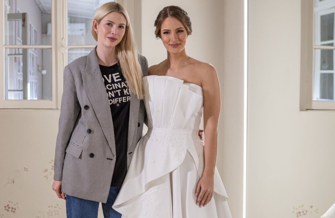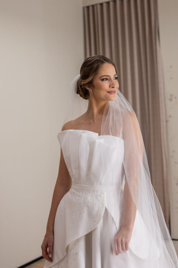 A estilista Camila Paludo trabalha com uma filosofia de moda afetiva. “Sempre digo para minhas noivas que o mais importante é vestir-se de si mesma”, explica. O atelier, que carrega três gerações de tradição familiar na costura, aposta em peças totalmente personalizadas. Em setembro de 2025, a própria estilista aplicou essa filosofia em seu casamento na Itália, criando um vestido com mais de 500 flores artesanais e bordando uma carta do noivo no tecido. O processo, compartilhado nas redes sociais, ganhou atenção do público. “As pessoas acompanharam cada detalhe e isso fortaleceu a identidade do atelier”, conta Camila.