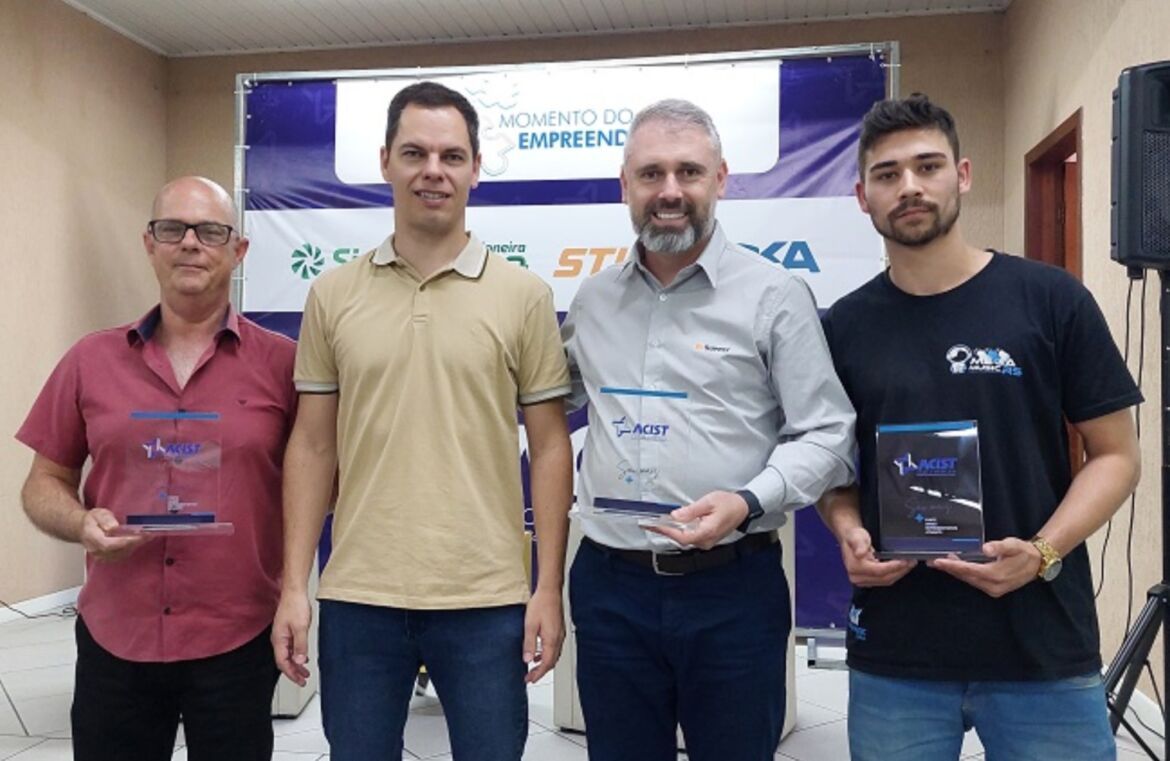 Uma placa comemorativa foi entregue para sete empresas que fazem aniversário de fundação em anos múltiplos de cinco durante o Momento do Empreendedor da Acist-SL, realizado nesta quinta-feira (18). A atividade é de parabenização às associadas é tradicional no evento da entidade. A homenagem foi concedida pelo presidente da Acist-SL, Daniel Klafke.