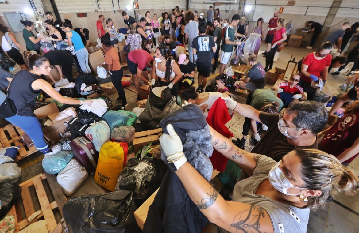 Uma extensa rede de voluntários está engajada – e tem sido fundamental – na organização das doações armazenadas no Centro Logístico da Defesa Civil do Estado, localizado na antiga sede da Companhia Estadual de Energia Elétrica (CEEE), na zona leste de Porto Alegre.