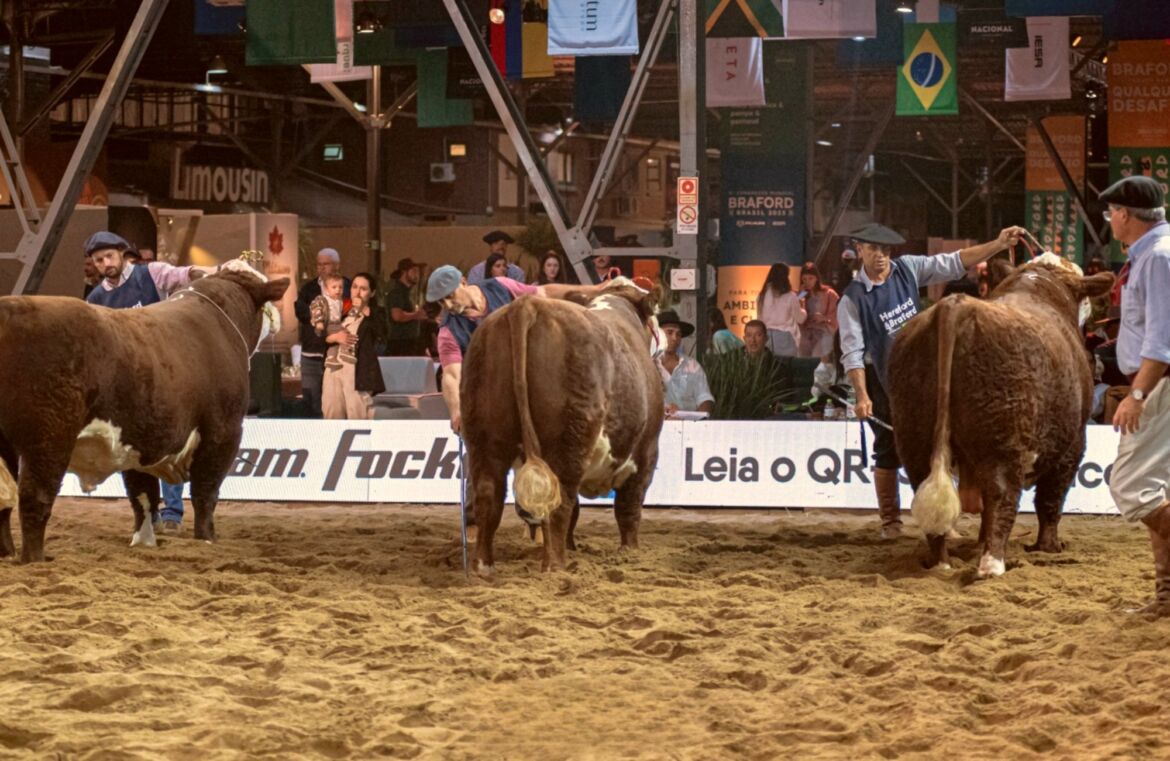 A Exposição Nacional das raças Hereford e Braford deve movimentar 1.250 animais ao longo do evento, que ocorre no Parque de Exposições Assis Brasil, em Esteio, de 19 a 25 de abril. O volume inclui exemplares participantes dos julgamentos, a oferta comercial e animais envolvidos em atividades paralelas realizadas no mesmo local, como as provas do Bocal de Ouro.
