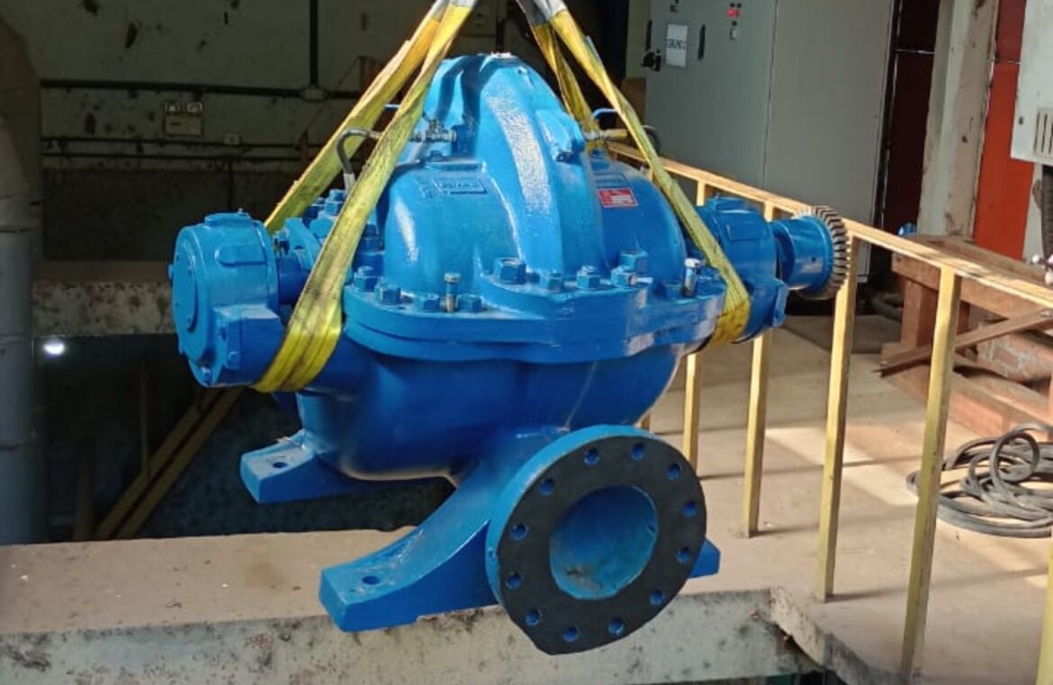 A Comusa, Serviços de Água e Esgoto de Novo Hamburgo, substituiu uma das bombas de captação na Estação de Água Bruta (EAB), localizada junto ao Rio dos Sinos, na Estrada Leopoldo Petry, em Lomba Grande. A troca foi feita ainda em fevereiro após análise da equipe de técnica que verificou um desgaste maior na bomba devido à captação em níveis mais baixos do rio, durante a estiagem.