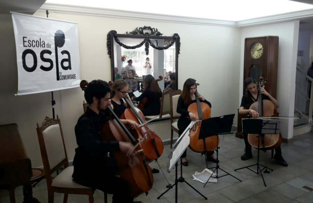 No dia 30 de maio, quinta-feira, o grupo de estudantes de Cellos da Escola de Música da Ospa, levará música erudita e popular a residentes do Lar Maurício Seligman, de Porto Alegre. O recital é o terceiro da série de apresentações do projeto Ospa na Comunidade em 2019, iniciativa que tem como objetivo aproximar públicos diferentes dos que usualmente frequentam as salas de concerto.