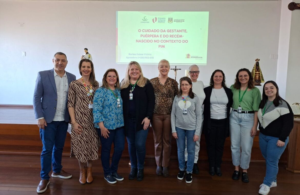 Dois Irmãos sediou na quinta-feira (2) uma formação regional do Programa Infância Melhor (PIM), que abordou o tema “Atendimento a gestantes, puérperas e recém-nascidos e mostra de experiências de visitadores: o PIM na Atenção Primária à Saúde (APS)”. O encontro foi conduzido pela coordenadora do PIM da 1ª Coordenadoria Regional de Saúde (CRS), Karina Alida Guisso Vitória, e ocorreu no Centro Pastoral da Paróquia São Miguel.