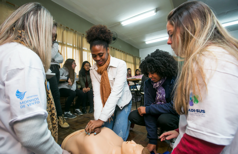 O curso, ministrado pelo guarda municipal Saraiva, que é enfermeiro, abordou técnicas de atendimento em situações de parada cardíaca, sangramentos e episódios de engasgamento.