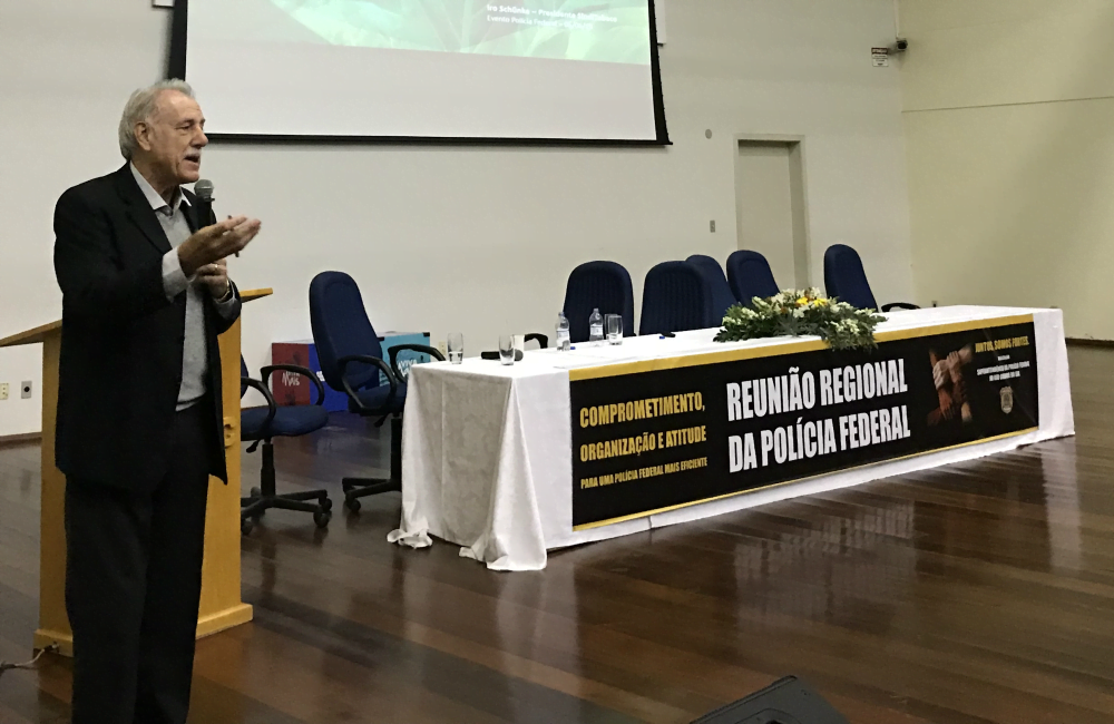 O presidente do Sindicato Interestadual da Indústria do Tabaco (SindiTabaco), Iro Schünke, apresentou nesta quinta-feira (6) informações sobre produção e consumo de tabaco para 120 policiais federais que estão participando da reunião regional promovida pela Superintendência Regional da Polícia Federal do Rio Grande do Sul.