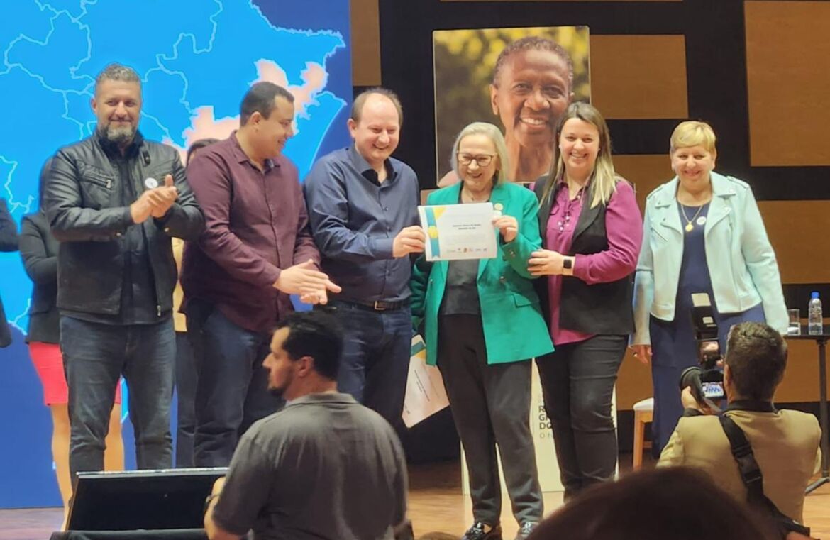 Estância Velha recebeu, nesta segunda-feira (10), o Selo Ouro do Programa Compromisso Nacional Criança Alfabetizada. A premiação ocorreu em Brasília e reconhece os resultados obtidos pelo município em 2024 na alfabetização de crianças, com base nas ações implementadas para elevar os índices de aprendizagem dos estudantes em processo de alfabetização.