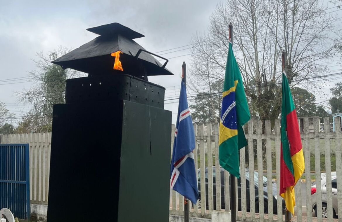 O Fogo Simbólico da Pátria chegou a Picada Café na tarde desta quarta-feira (20), em solenidade realizada em frente à Secretaria Municipal de Educação e Cultura. A centelha foi trazida em uma caminhonete e entregue ao vice-prefeito Max Mallmann, que acendeu a chama dando início às comemorações cívicas do município. A cerimônia foi coordenada pelo professor Marcelo Marin.